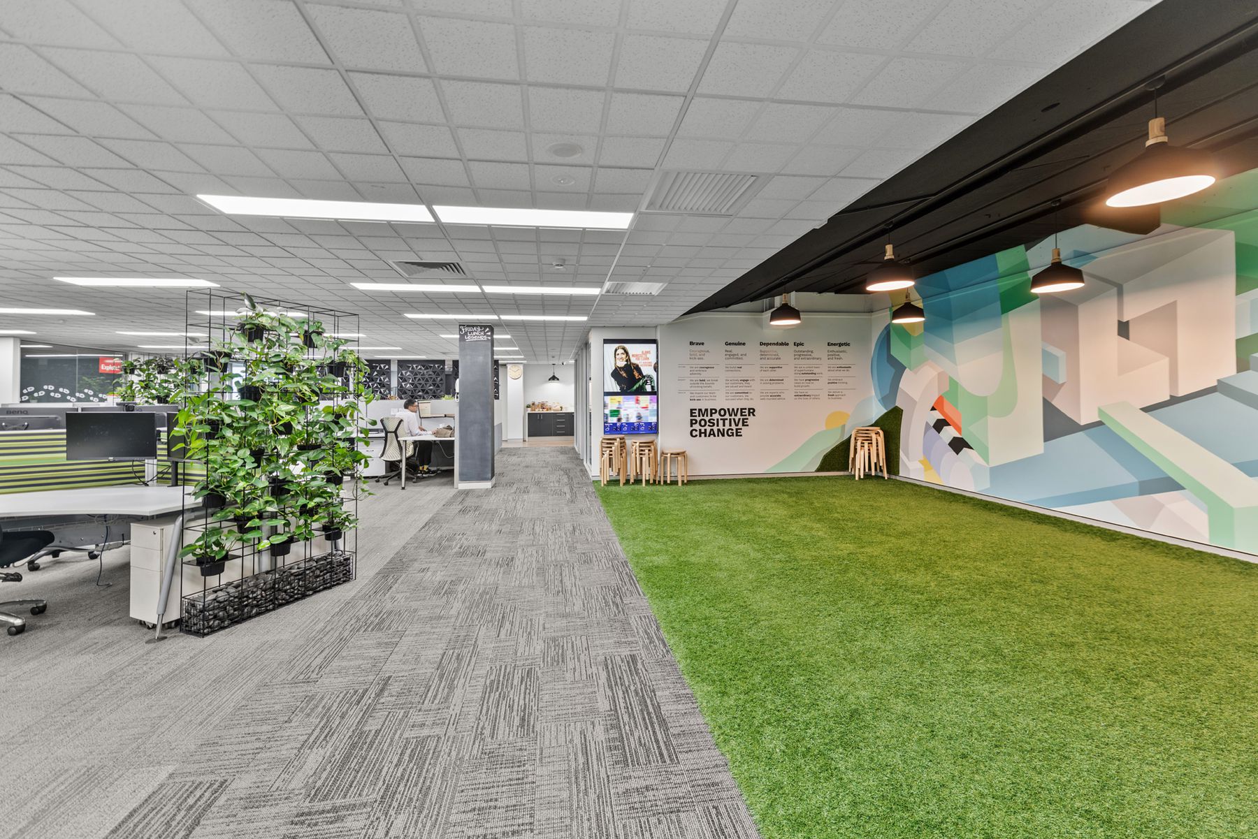 • Mix of open-plan, meeting rooms, and private offices