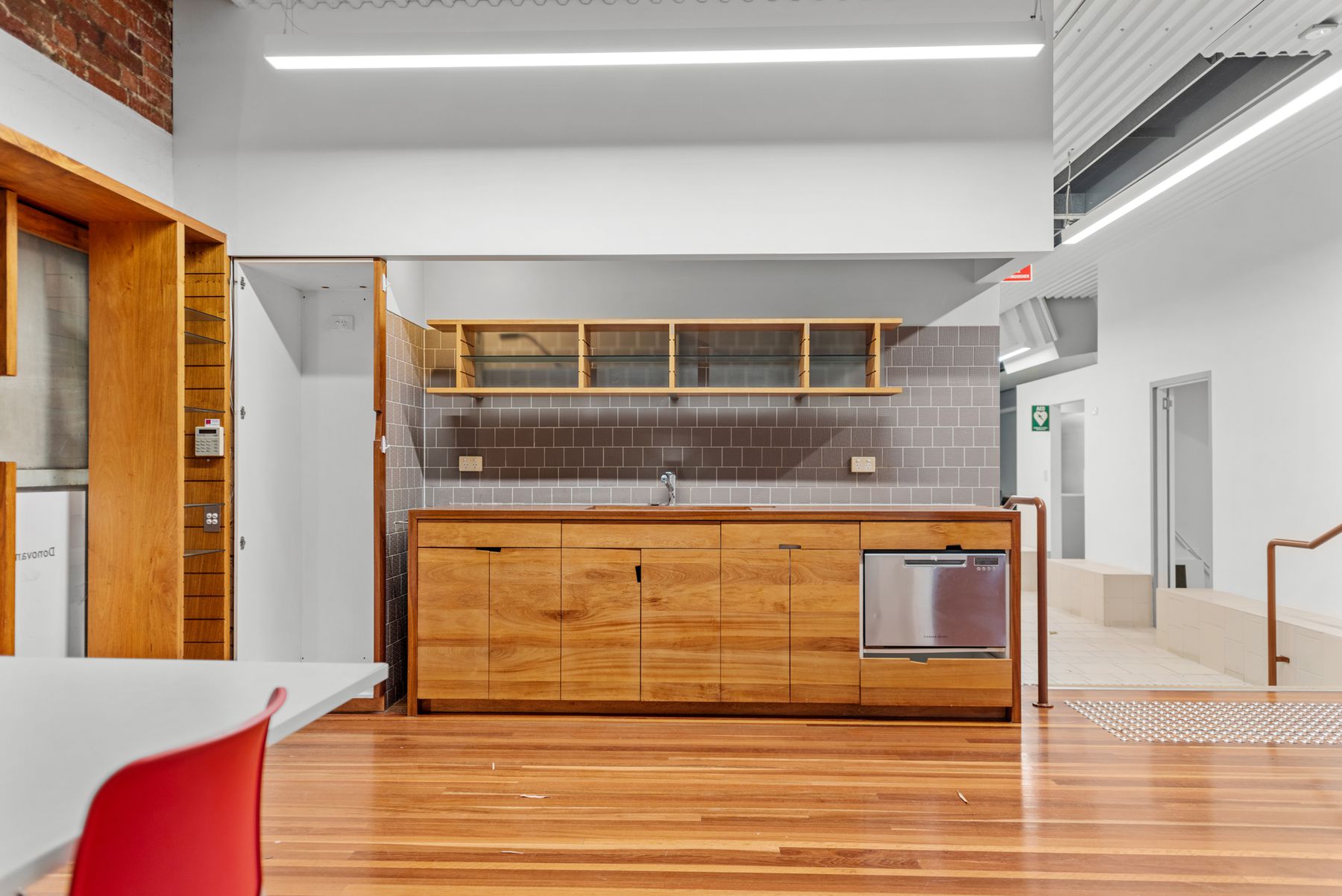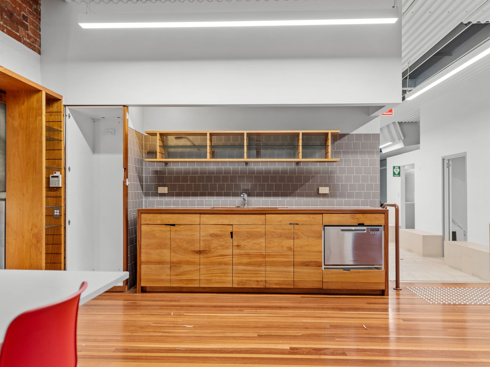Comprising 322m² of internal space plus outdoor breakout areas and secure onsite amenity, this property delivers functionality with a sense of presence. A flexible layout features open-plan workspace, private meeting rooms, dual kitchens, and modern facilities.